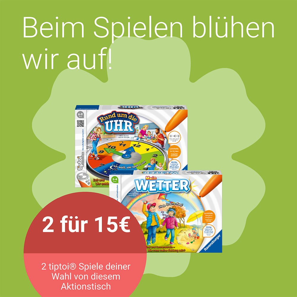 Bei Ravensburger erwarten Sie wieder viele tolle Aktionen und Angebote, z.B. Tiptoi Spiele 2 Spiele für 15€ *Aktionszeitraum: 07.04.