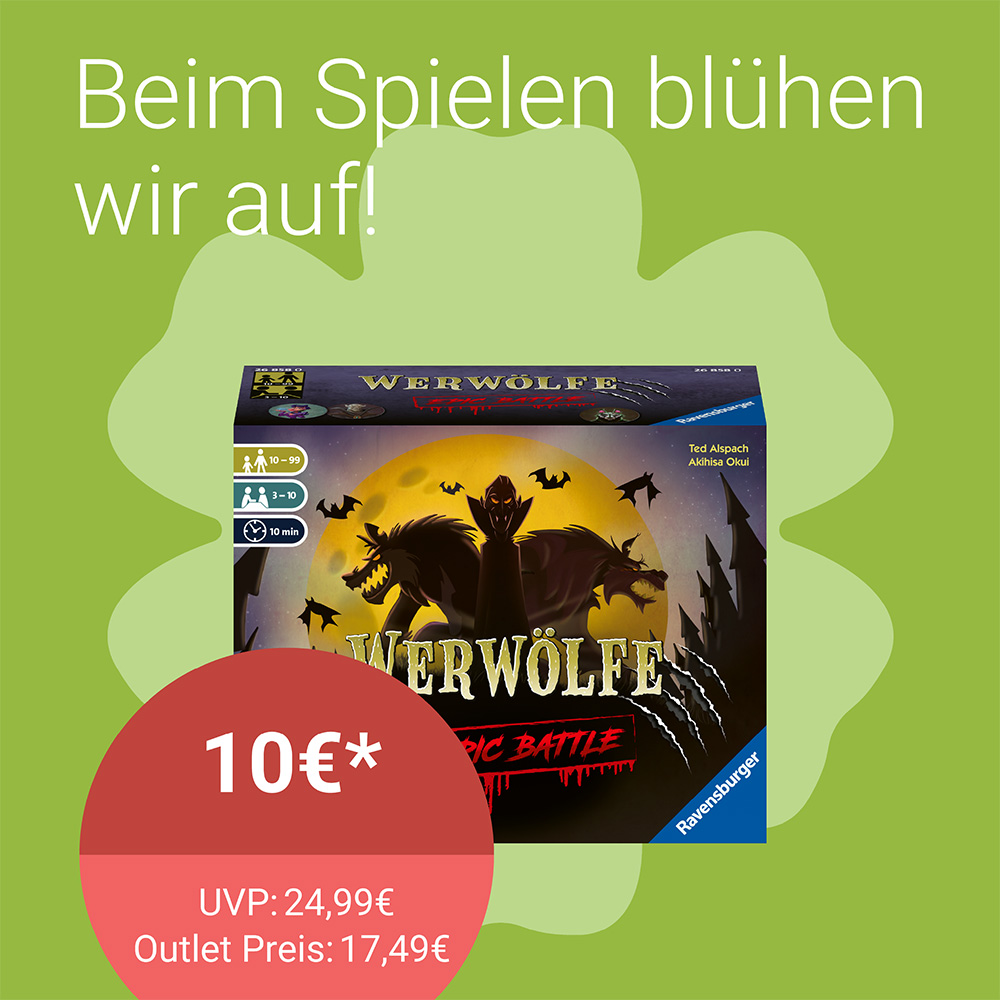 Bei Ravensburger erwarten Sie wieder viele tolle Aktionen und Angebote, z.B. Werwölfe Set 26858 UVP 24,99€, Outlet Preis 17,49€